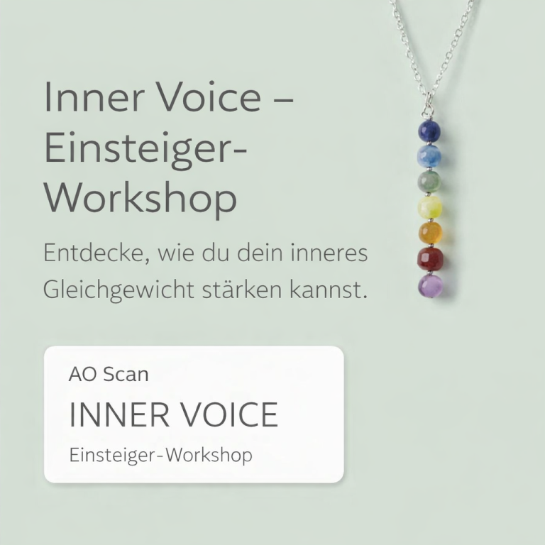 In diesem 60-minütigen Online-Workshop lernst du, den AO Inner Voice Scan bewusst zu erleben und deine emotionale Wahrnehmung zu vertiefen.